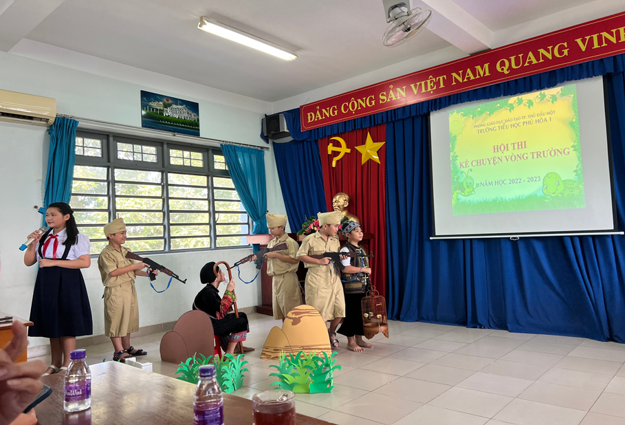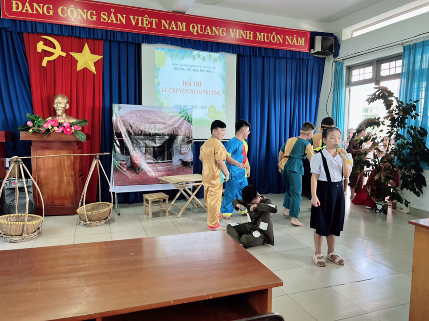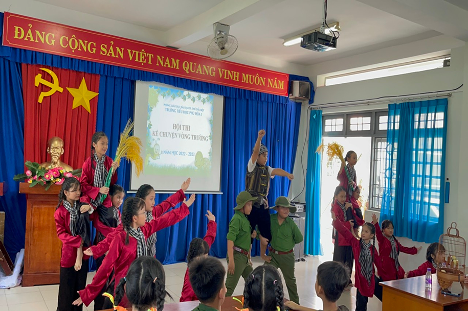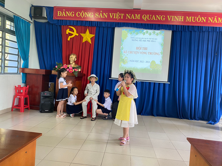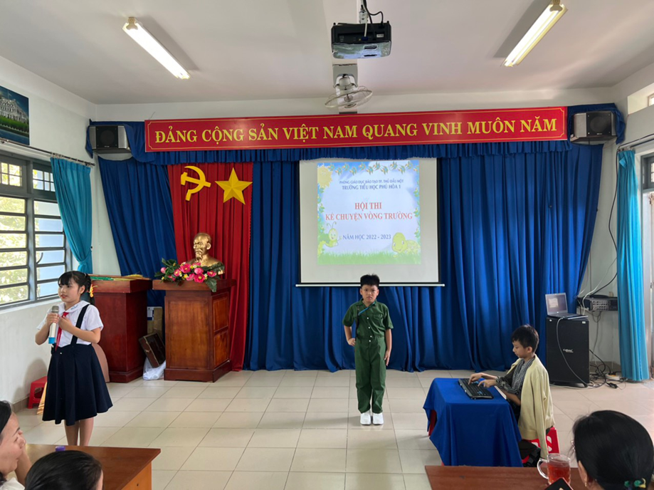 Chiều ngày 19 và 20/12/2022, trường Tiểu học Phú Hòa 1 tổ chức Hội thi Kể chuyện theo sách vòng trường năm học 2022 – 2023. Đây là sân chơi bổ ích và lí thú, giúp học sinh rèn luyện kỹ năng giao tiếp, tự nhận thức; kỹ năng suy nghĩ sáng tạo; kỹ năng ra quyết định, làm chủ bản thân. truyền đạt tư tưởng, tình cảm, cảm xúc của mình một cách chính xác và biểu cảm, ngày càng phát triển tư duy ngôn ngữ, năng lực văn học, nâng cao kĩ năng đọc và trình bày. Đồng thời lập thành tích chào mừng ngày thành lập Quân đội Nhân dân Việt Nam 22/12.